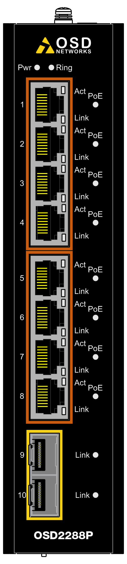 | 8 | OSD2288P | 8x | ✔ | ✔ | ✔ | 2x SFP | Lite Managed 10-port Ethernet Switch with SNMP & VLAN 8 x 10/100/1000BASE-T with 90W PoE & 2 x 1G/2.5G SFP | ![]() |